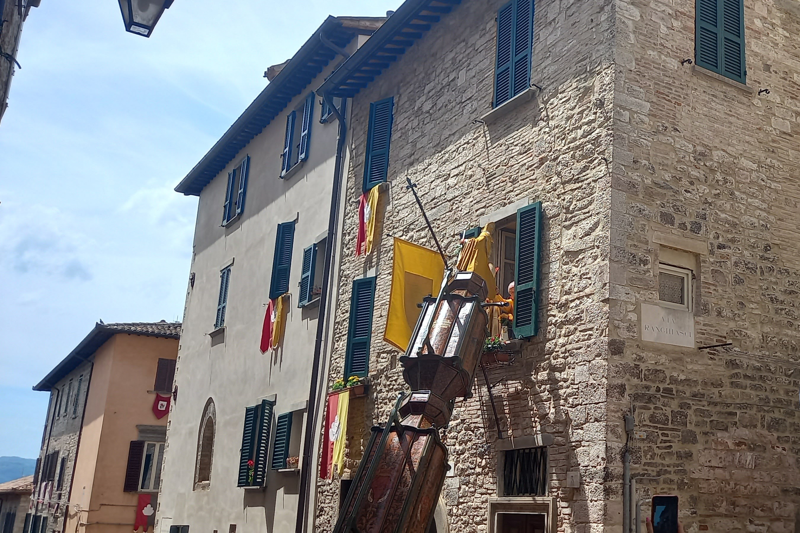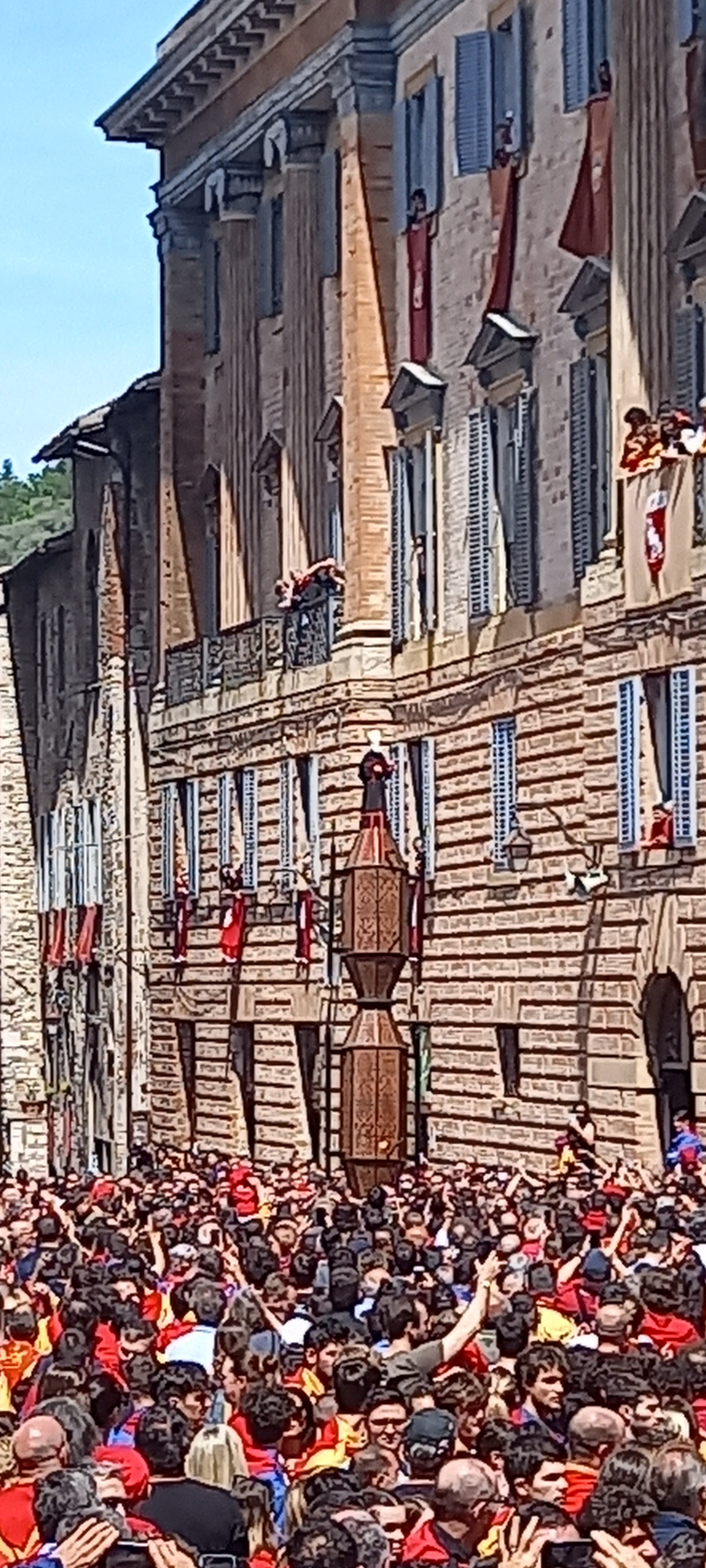 Continua a leggere: Tre Ceri una cittàÈ infatti dalla morte di vescovo Ubaldo, il defensor civitatis, e dalle luminarie in suo onore che ha origine la Corsa. Un rito medievale che assorbe e rielabora gli antichi rituali umbri del maggio, della rinascita dopo il lungo letargo invernale. Una giornata che ne vale trecentosessantacinque. Un cerimoniale complesso. Tre famiglie: Santubaldari, Sangiorgiari, Santantoniari. Tre colori: il giallo, l’azzurro ed il nero. I ceri grandi, i mezzani e i piccoli. Il popolo, le istituzioni laiche e religiose, la compagnia dei campanari, i tamburini … un grande racconto collettivo, un atto di amore per la propria città.