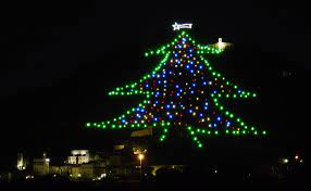 Il monte Ingino diventa ogni anno, da molti anni ormai, l’Albero più grande del mondo. Stupore, meraviglia, entusiasmo, simbolo di fratellanza e solidarietà. L’albero fatto di centinaia di luci colorate, con un effetto cromatico particolare ed unico, che salgono dalle mura medievali della città verso la cima del Monte, un monte molto amato, che conserva e protegge le spoglie del patrono Ubaldo e che difende la città.