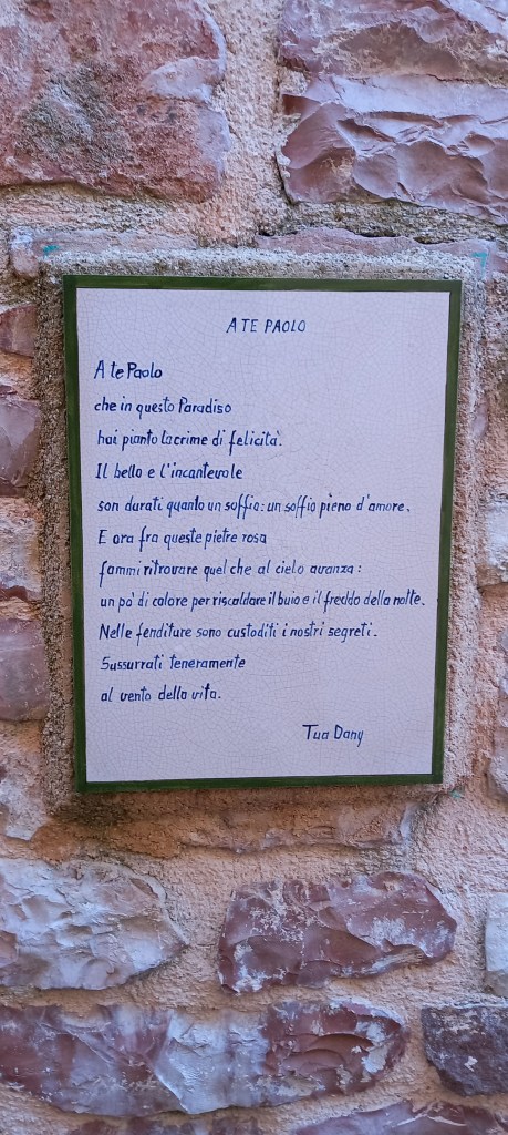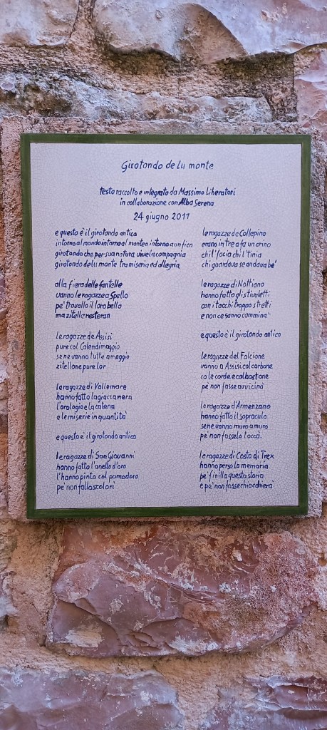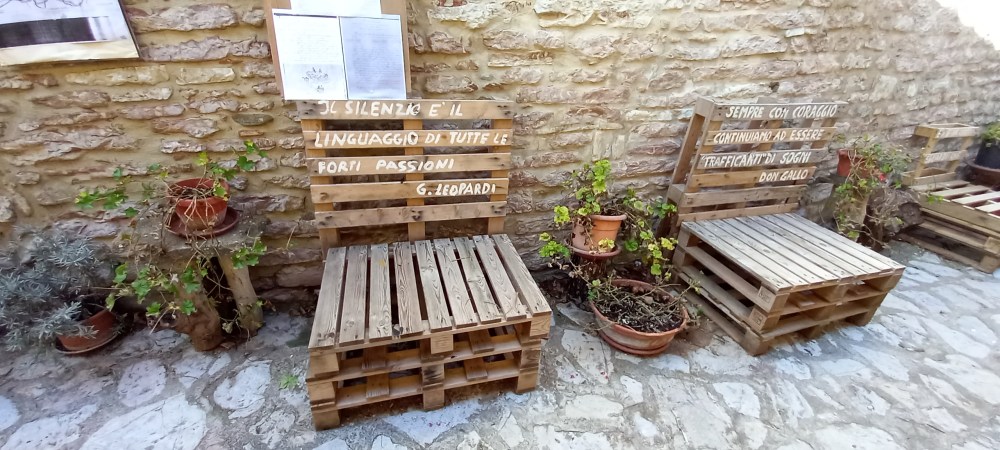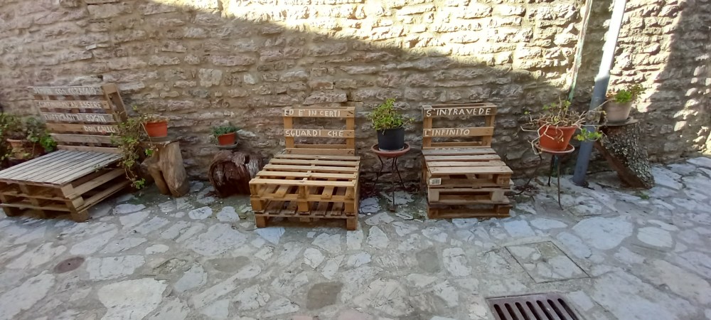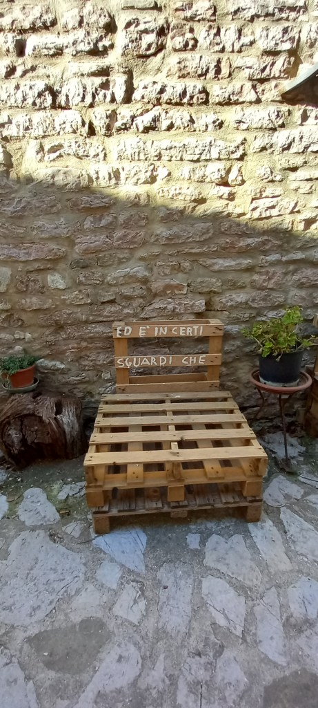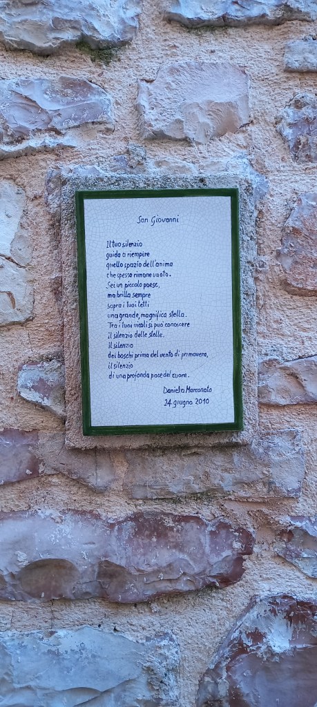 Sorprende che oltre le mura, le porte, gli stretti vicoli, i campanili a vela , Armenzano e San Giovanni sono accomunati da una presenza insolita: sulle panche e sulle pareti di antichi edifici frasi lasciate ad attendere viaggiatori in cerca di emozioni e di bellezza.